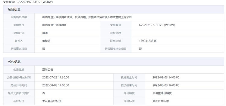 山临高速公路收费所临泽、张掖丹霞、张掖西站污水接入市政管网工程项目招标公告